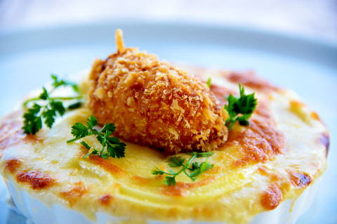 京都府八幡市戸津中代41-1 国道1号沿い 075-971-0010 Fax075-971-9870 営業時間のお知らせ 20時オーダーストップ21時閉店とさせていただきます 炭火焼ステーキをメインにした和魂洋彩のスタイルです 4月15日までのおすすめ カニクリームコロッケと貝柱のグラタン (特別コース)